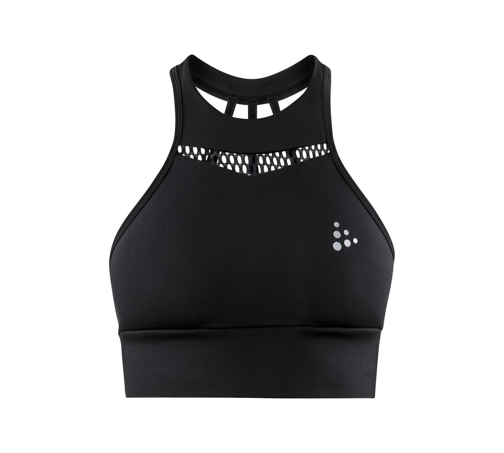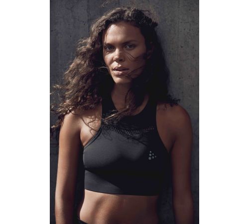 Короткий спортивный топ от CRAFT из новой коллекции STUDIO с сетчатой вставкой для эффективной вентиляции во время усиленных тренировок. Плотная посадка. Высокий вырез. Лямки на спине.